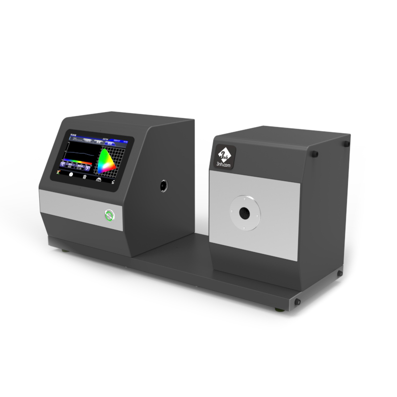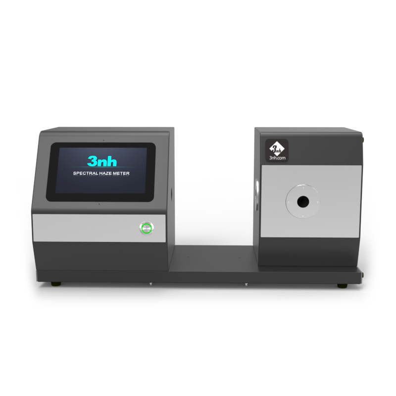 3nh YH1810水平数字透光率测试仪颜色雾度计 可以轻松实现ASTM D1003无补偿法、ISO 13468补偿法、全透光率、雾度测试、清晰度测试。配合精密凹面光栅和256像素CMOS探测器,可以准确地实现采集透射样品的透过率曲线,准确输出透射样品的各种色度数据,实现透射率、雾度、色度数据的高精度、可重复测量。