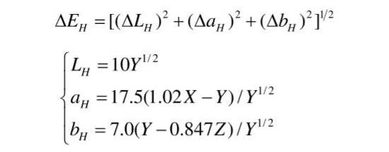 式中 X,Y,Z 为样品的三刺激值。Hunter Lab系统常用于陶瓷工业、塑料工业和纺织工业。
